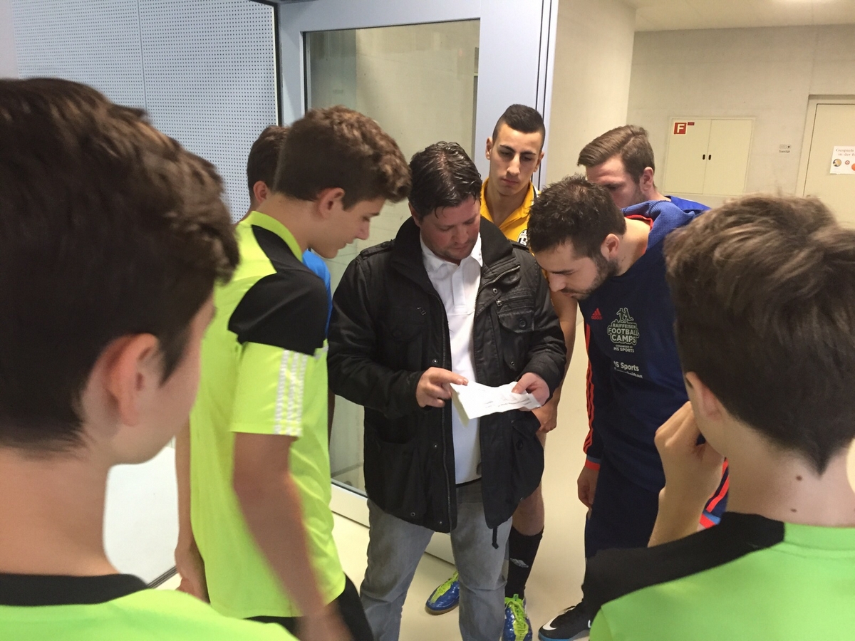 Teambesprechung: Teams mit Spielern aus allen Vereinen und Alterskategorien besprechen sich (Bild: REGIOfussball.ch).