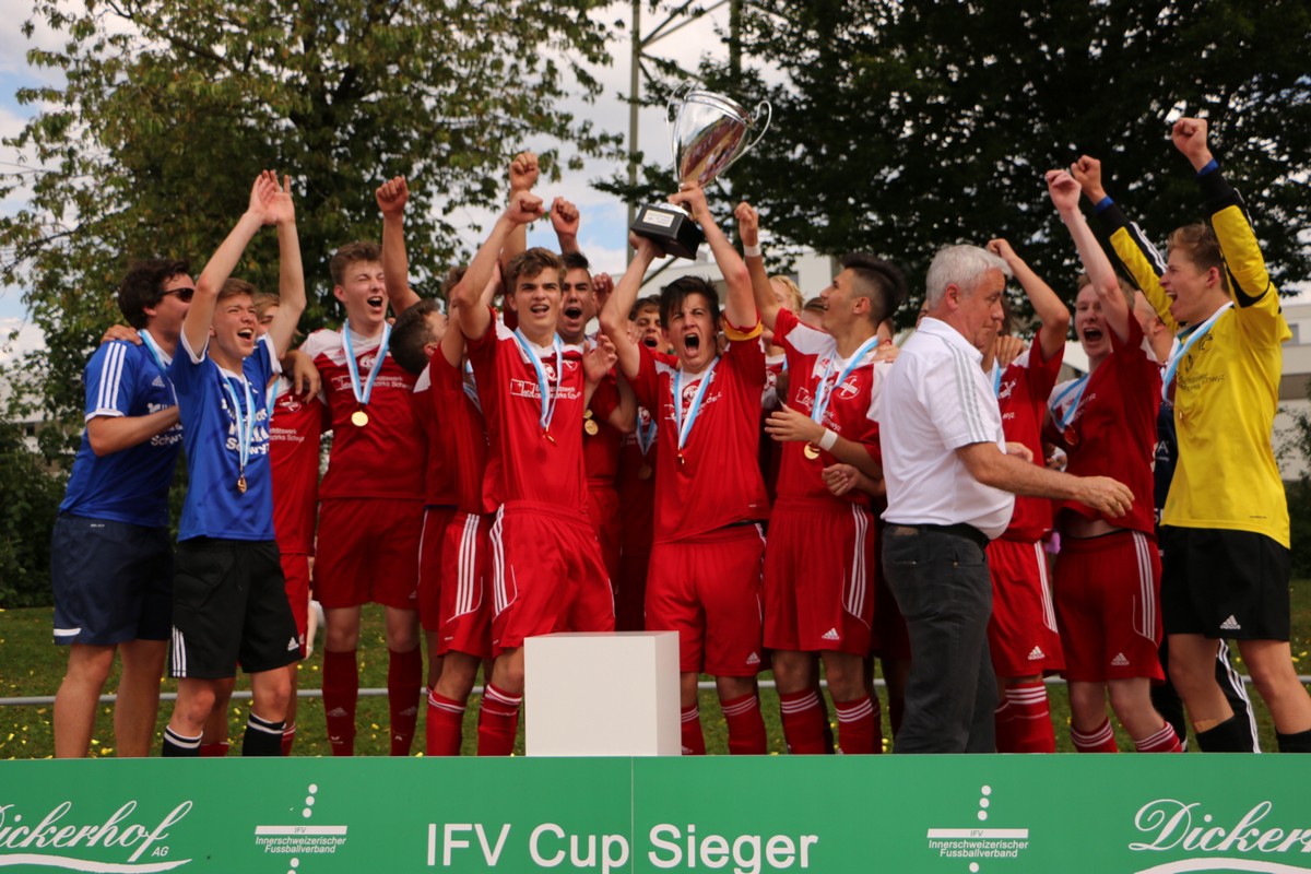 Damit steht die SG Schwyz/Ibach mit ihrem Trainer-Trio Fähndrich/Wolf/Patierno am Ende einer perfekten Saison. Nicht nur wurde man während der Hallensaison bereits kantonaler Meister wie auch Innerschweizer Meister, sondern schaffte am vergangenen Wochenende auch vorzeitig den Aufstieg in die Coca-Cola-Junior-League. Mit dem IFV-Cupsieg wurde nun auch der vierte grosse Titel geholt, wodurch vereinsintern Historisches geschafft wurde. Der SC Schwyz und der FC Ibach dürfen Stolz auf diese talentierten und stets grossartig kämpfenden Junioren sein.