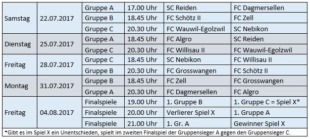 Mit dem Aufstieg geklappt hat es dagegen bei den Gegnern von Schötz II in der Gruppe B. Nach acht langen Jahren sind die Zeller zurück in der 3. Liga und wollen an ihrem Heimturnier das positive letzte Jahr fortführen. Der FC Grosswangen schaffte etwas glücklich und in Extremis als zehnter und letzter Aufsteiger der abgelaufenen 4. Liga-Saison die Promotion. Die Umstände dürften dem Team um Trainer Marco Blasucci egal sein. Wie die Einheimschen werden die Rottaler versuchen, den Schötzer Reserven ein Bein zu stellen und Gruppenerster zu werden.