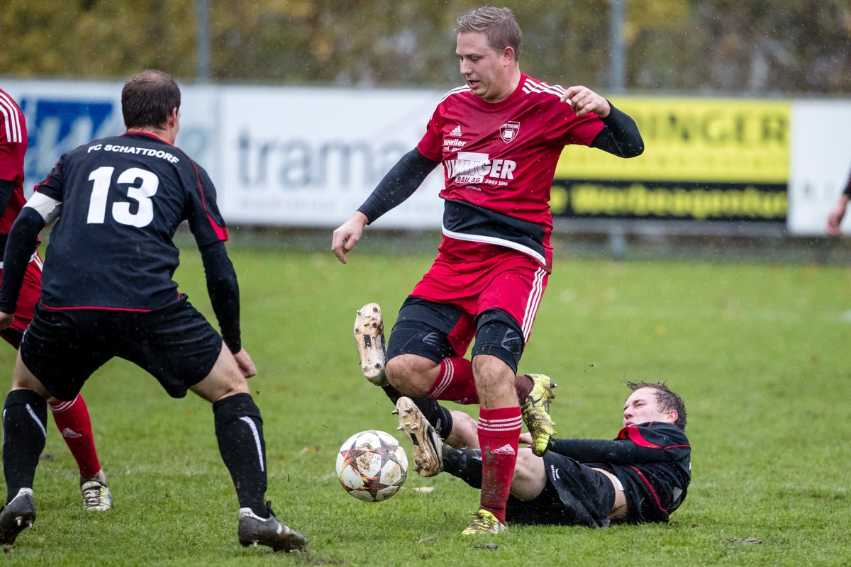 Zum Schluss glich das Feld mehr einem Acker denn einem Fussballplatz. Es wurde gerutscht und gegrätscht – vieles blieb Zufall, nur eines war sicher: Das Glück des Tüchtigen war an diesem garstigen Novembersonntag eindeutig auf Seiten der Urner. Denn nachdem Ramon Scheiber in der 67. Minute über die linke Seite nach vorne preschte und mit einem perfekt getimten Aussenristpass den auf der rechten Seite heransprintenden Noel Gisler bediente, der unhaltbar zur 2:1 Führung einnetze, mussten die angereisten Schattdorfer Anhänger beinahe ein halbes Dutzend Mal zittern. Doch weil Thomas Aschwanden mit mehreren Big Saves aufwartete, in der 70. und 77. Minute beste Chancen mirakulös zunichte machte und auch seine Vorderleute zwei Mal (75. und 83. Minute) im letzten Moment noch einen Fuss zwischen Ball und Tor brachten, rettete die Trovatelli-Elf auch im fünften Spiel in Folge drei Punkte über die 90 Minuten.