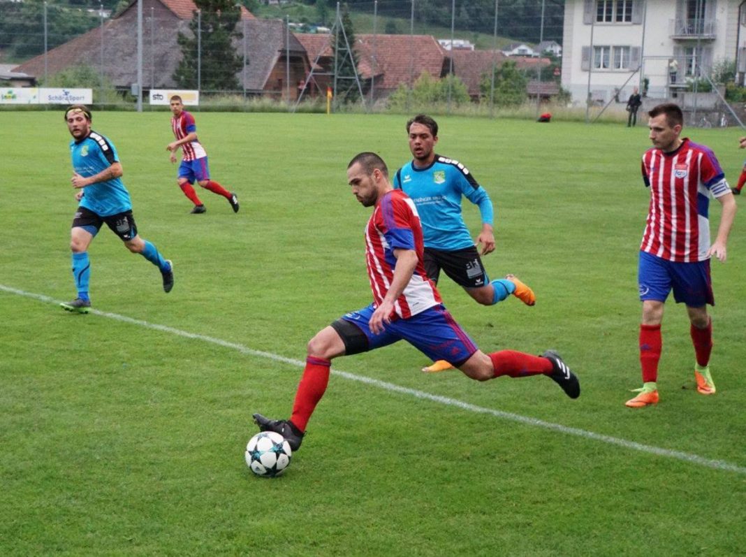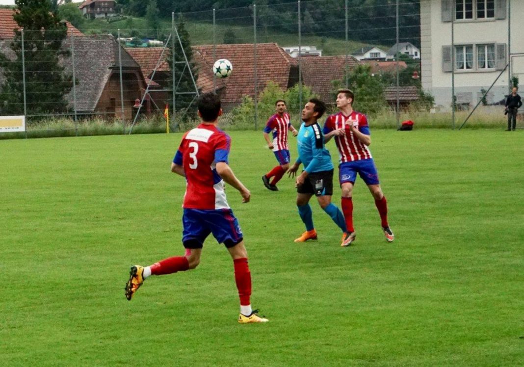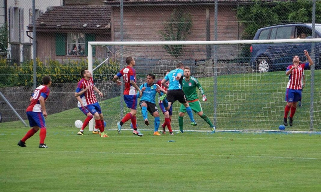 Nach einem ersten Abtasten übernahmen die spielerisch klar besseren Rotkreuzer die Spielkontrolle und kamen in der 6. Minute zu einem ersten Abschluss nach einem schnellen Umschaltspiel durch Topskorer Dragan Gyorgiev. In der 12. Minute dann ein weiterer, sehr schöner, schnell gespielter Angriff. Zvetan Churlinov bediente an dessen Ende Gyorgiev mustergültig und dessen noch abgelenkter Schuss landete unhaltbar zur FCR Führung im Netz. Fast aus dem Nichts dann der überraschende Ausgleich: FCR Verteidiger Mattia Palatucci, normalerweise die Ruhe in Person, rutscht im dümmsten Moment auf dem harten aber trockenen Boden aus (falsches Schuhwerk?), Algro’s Koller schnappt sich die Kugel und schiesst trocken und präzise in die untere Ecke zum 1:1 ein. Rotkreuz blieb trotz des Rückschlages fokussiert, nahm die vielen Zweikämpfe diesmal besser an als noch in Emmenbrücke und brachte die Algro Abwehr in dieser Phase ein ums andere Mal in Verlegenheit.