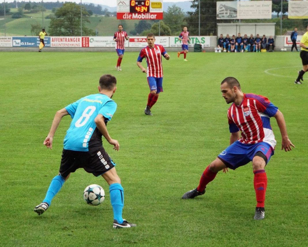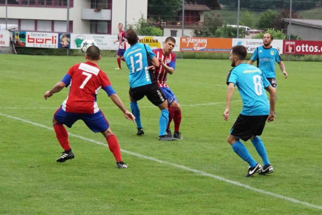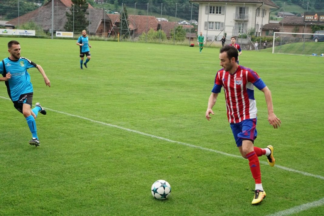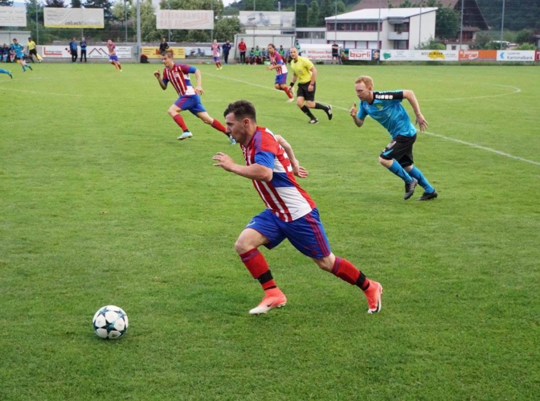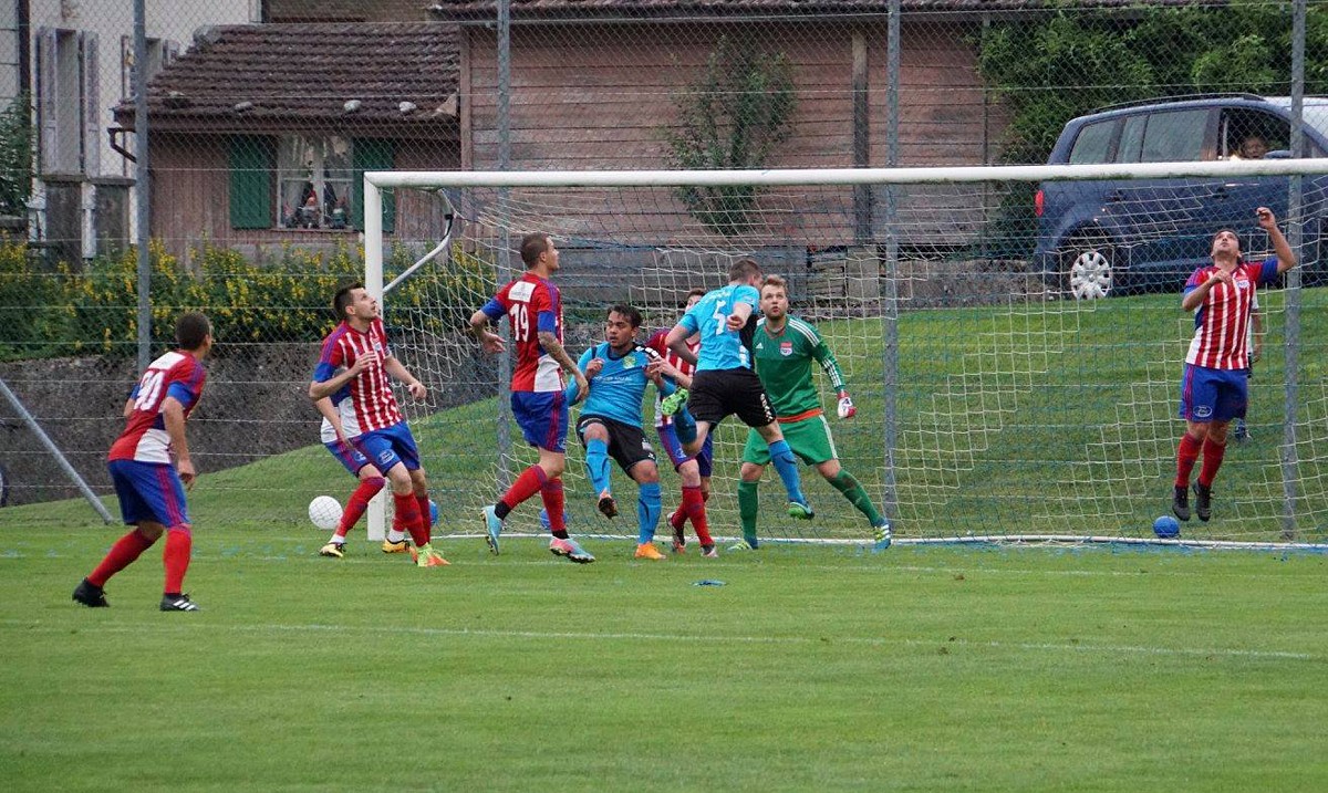Drei Punkte. Das war das Ziel für dieses Spiel gegen Rotkreuz. Eine Herkules-Aufgabe sollte es werden, wie sich schon bald einmal herausstellen sollte. Denn der Favorit aus dem Zugerland begann die Partie sehr dominant. Liess Ball und Gegner gekonnt laufen. Im Zentrum gaben die beiden brasilianischen Samba-Kicker Alan Nabarro und Gustavo Campello den Takt vor. Und vorne drin sorgten die beiden Mazedonier Dragan Gyorgiev und Cvetan Churlinov für die Musik. Für den ersten Torerfolg brauchte es allerdings einen verunglückten Befreiungsschlag aus der Algro-Defensive. Doch Gyorgiev vollstreckte cool. Für die Zuger lief also alles nach Plan. Bis nur zwei Minuten später Thomas Peter mit einem langen Ball Marcel Koller lancierte, welcher ebenso cool zum vielumjubelten 1:1 Ausgleich einnetzte. Wie aus heiterem Himmel waren die Algroaner wieder mittendrin in der Partie. Ja fast wäre es noch besser gekommen. Skelzen Alusi schickte Mike Iskandar in den Sechzehner, welcher es aus sehr aussichtsreicher Position aber vorzog, nochmals quer zu legen. Ohne Erfolg. So waren es halt wieder die Gäste, welche Jubeln durften. Immer wieder zogen sie ihr schnelles, sicheres Kombinationsspiel auf. Bis es der Algro-Defensive zu schnell ging. Nabarro – Gyorgiev – Churlinov, drin das Ding. 1:2. Und weil es so schön war, durfte Dragan Gyorgiev nur eine Zeigerumdrehung später gleich nochmal ran. Laserpass von Campello auf den dreifachen Mazedonischen Ex-Nationalspieler, welcher wieder eiskalt verwandelte. Die Zuger nahmen dann etwas Tempo raus, was es dem Heimteam erlaubte, nun besser in die Partie zu kommen. Und weiterhin auch zu tollen Tormöglichkeiten. So in der 27. Minute. Thomas Peter legte mit dem Kopf für Kilian Affentranger ab, der aber am glänzend reagierenden Goali Luca Bernasconi scheiterte. So ging es mit der 1:3 Gäste-Führung zum Pausentee.