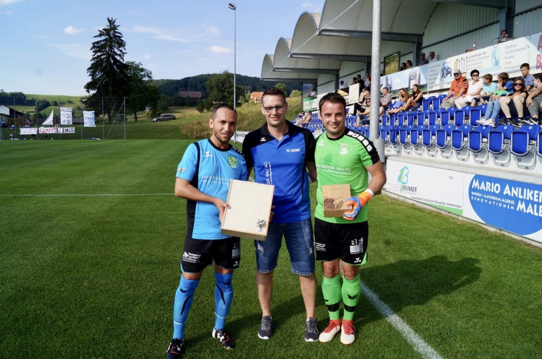 Nach 51 Minuten durften dann die beiden erwähnten Reto Langenstein und Adriatik Alusi die Aktiv-Bühne verlassen. Die beiden Teams standen Spalier und zollten so den beiden Akteuren Respekt und Anerkennung für ihre tollen Karrieren im Regionalen Fussball. Selbst auf der Tribüne bekam wohl manch einer Hühnerhaut, ab der tollen Geste der beiden Equipen. Cédrice Häfliger und Marcel Koller kamen ins Spiel und fügten sich gleich sehenswert ein. Erst rettete Hüter Häfliger mit einer Glanztat gegen Sedolli sein Team vor einem weiteren Gegentor. Und auf der Gegenseite markierte Marcel Koller in Torjäger-Manier das 2:3 für die hellblauen. Es lag also noch etwas drin für Algro. Natürlich hätte man das Spiel und somit auch die Saison noch so gerne mit einem Erfolgserlebnis abgeschlossen. Die Chancen waren in der Folge da, um die Partie noch auszugleichen. Doch wie sich bereits seit einigen Spielen bemerkbar machte, fehlte es im Abschluss an Genauigkeit und der nötigen Coolness. So waren es die Gäste, welche in den Schlussminuten das Skore erhöhen konnten. Robin Hrgota traf zum 2:4 Schlusspunkt. Dann war Feierabend auf der Aengelgehr. Dem FC Emmenbrücke durfte man zum Meistertitel gratulieren. Sie erhielten von den IFV-Vertretern die Goldmedaille und den Meisterpokal, während die Algroaner in ihrer obligaten Teamrunde ein kurzes Resümee zogen und den Blick bereits nach vorne in die neue Saison richteten. Denn Mitte Juli ist Trainingsstart, da will man wieder von Neuem angreifen.
