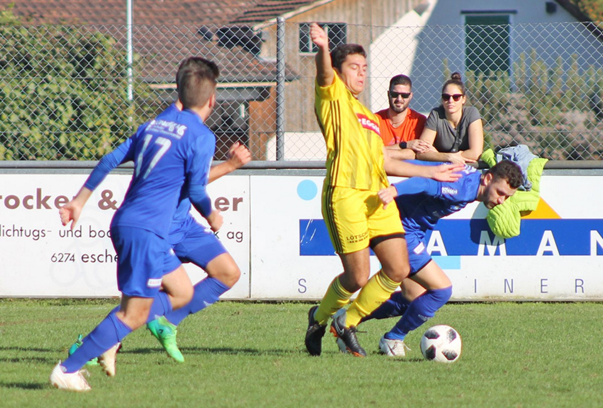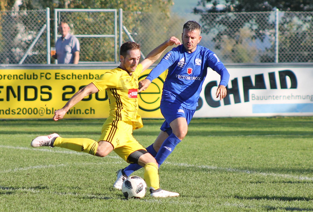 Ibachs Schlegel (rechts) im Zweikampf mit Eschenbachs Emmenegger (Bild: Armin Reichlin).