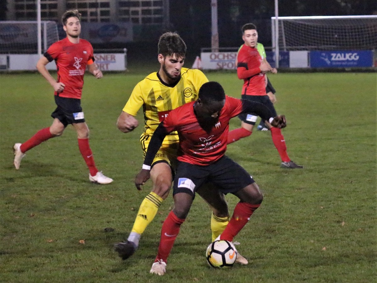 Der Eschenbacher Matthias Erni bedrängt Stephane Munduki (Bild: Daniel Gerber).