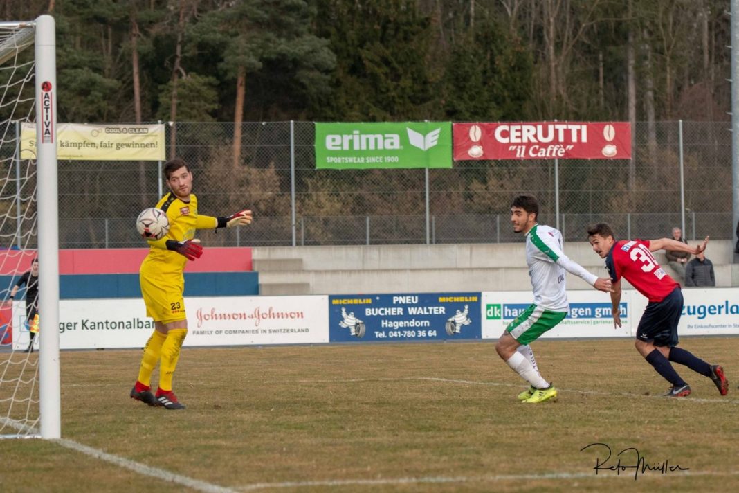 Der SC Cham gewinnt seine erste Partie nach der Winterpause gegen Brühl St.Gallen mit 1:0 Toren. Die Eizmoos-Elf musste sich allerdings lange gedulden, bis der entscheidende Treffer in der 91. Minute durch Neuzugang Kevin Röthlisberger fiel.