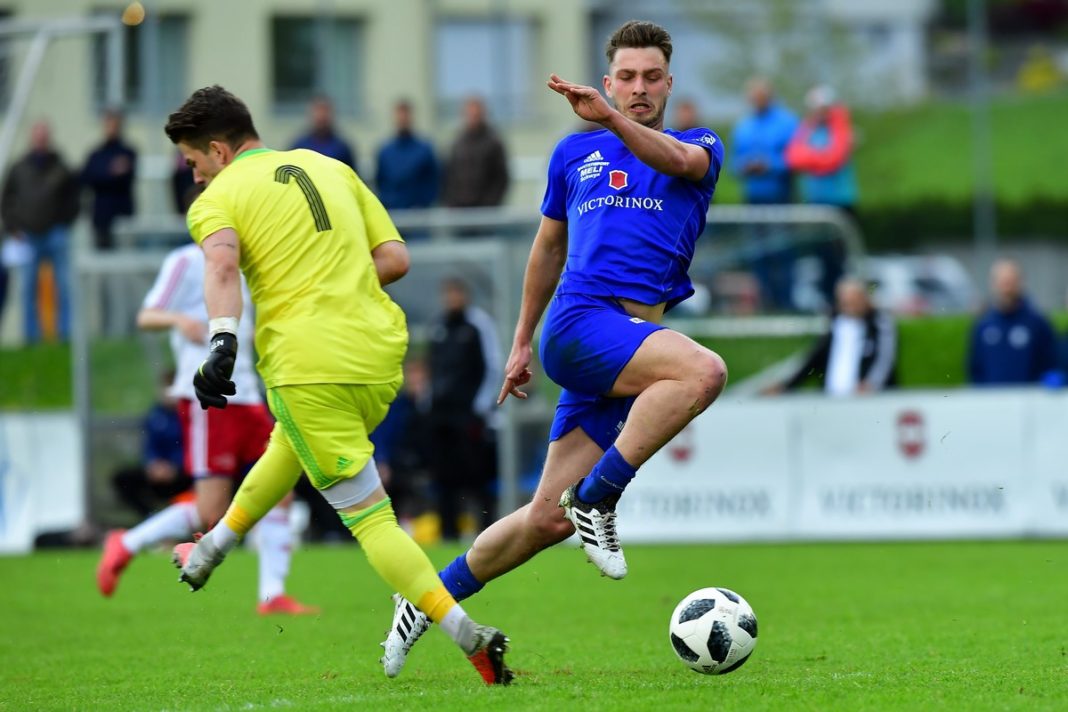 Beide Teams starteten zwar aggressiv, aber mit einer gewissen Vorsicht ins Derby. Viele Zweikämpfe im Mittelfeld prägten die Startphase und es gelang beiden Mannschaften nicht, Gefahr vor dem gegnerischen Tor herauf zu beschwören. In der 25. Minute tauchte der Brunner Krasniqi alleine vor Koller auf. Der blieb lange auf den Beinen und parierte den Abschluss sicher. Auch die zweite Topchance der Gäste in der 34. Minute durch Julian Truttmann vereitelte Goalie Koller mit einer brillanten Fussabwehr. Beim dritten Mal, kurz vor der Pause blieb aber auch Ibachs Schlussmann ohne Chance. Der Ex-Ibächler Steiner hämmerte den Ball in die Maschen. Brunnen führte in der 42. Minute nicht unverdient mit 0:1.