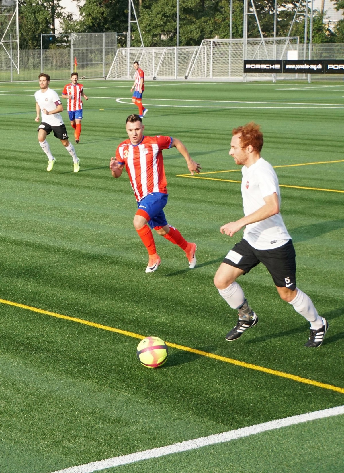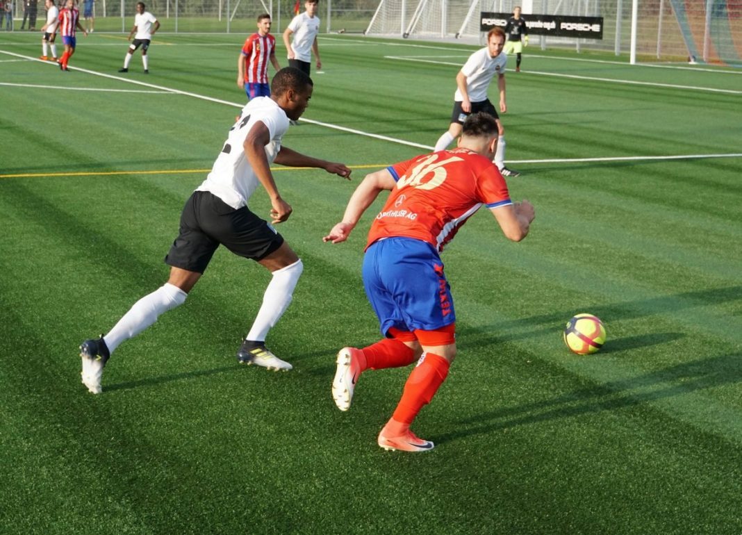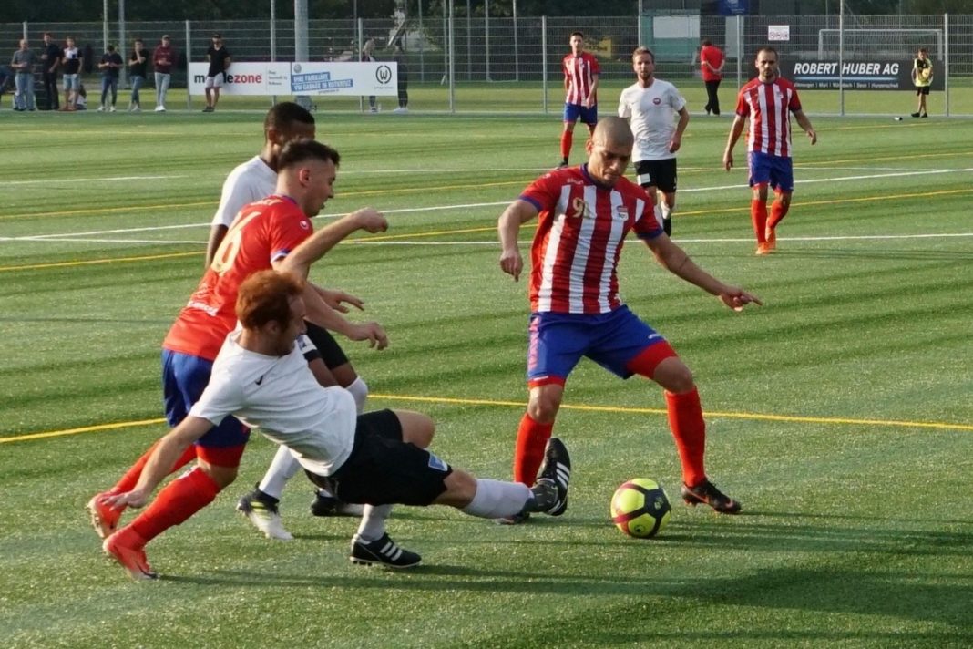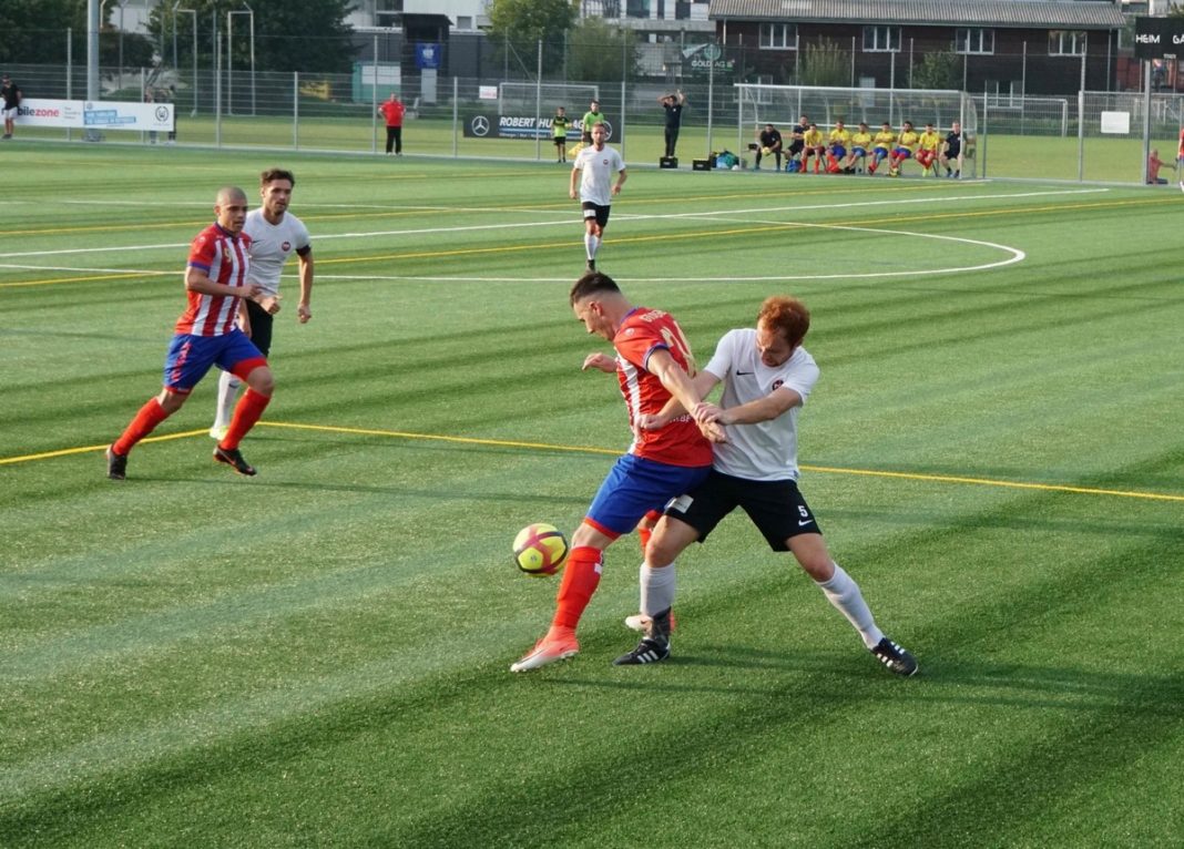 Die Gäste, welche sehr laufstark und aufsässig auftraten, zeigten aber eine gute Moral und kämpften unverdrossen weiter. Besser noch. In den zehn Minuten vor der Pause als der FCR nach der klaren Führung etwas gar passiv wurde, verkürzte erst der aufgerückte Verteidiger Yonas Kidane mit einem sehenswerten Kopfball auf 3:1. In der 43. Minute war sich die Zuger Abwehr dann uneins wer für Kickers Mittelfeldakteur Sandro Villiger im 5er zuständig war. Villiger sagte alleine gelassen Danke und spitzelte den Ball unter FCR Hüter Aaron Hönger zum 3:2 Pausenstand in die Maschen.