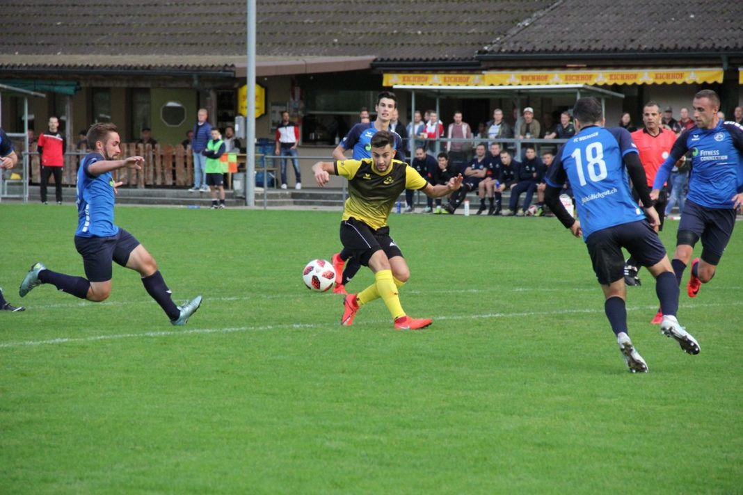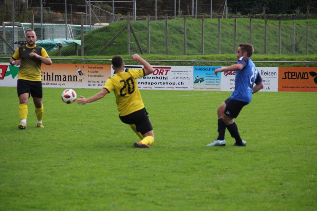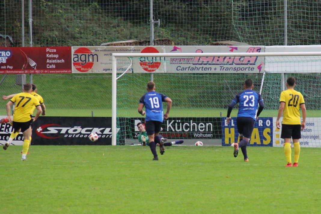 Auf der Gegenseite versprang Fabian Ukaj in der 10 Minute der Ball im unglücklichsten Moment. Beim Freistoss von Daniel Brunner, mit Ablauf der Startviertelstunde aufs Gästetor gezogen, verhinderte ausgerechnet ein Wolhuser Stürmer dessen Weg ins Tor. Die ebenbürtigen Gäste hatten für einige Fussballkenner gar mehr vom Spiel. Mit einem „Imfeld Spezial“ sorgte ein Rundschlag übers eigene Tor für einen ersten Adrenalinschub. Augenblicke später foulte die Wolhuser Abwehr Gjon Paluca auf der linken Strafraumseite. Der Gefoulte schritt zielstrebig, trotz ungeschriebenem Gesetzt, dass sich der gefoulte Akteur, nicht selber vom Punkt aus versuchen sollte, zur Ausführung. Mit einem riesen Fussreflex parierte Fabian Stöckli dessen Schuss vom Elfmeterpunkt. Alleine schon mit dieser Tat rechtfertigte der Wolhuser Keeper seine Nomination für den Part zwischen den Pfosten.