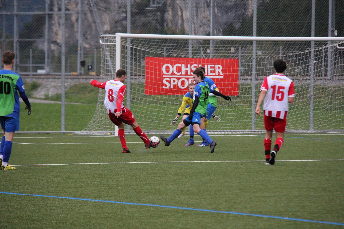 Immerhin gelang dem FCK der Ausgleich kurz darauf dennoch. Nach einem Einwurf leitete Nicola Landolt den Ball hoch weiter auf Antonio Linares. Dieser spitzelte auf der 5er-Höhe geschickt am Goalie vorbei zum 1:1. Bis zur Pause fiel Küssnacht dann insbesondere durch einen ruppigen Einsatz auf, der durch drei gelbe Karten geahndet wurde. Der Gast startete aber stärker in die zweite Halbzeit und kam mit Stadler und Ravarotto zu Chancen. Dann der Dämpfer: Erstfelds Gian-Luca Tresch durfte nach einem Foul im Strafraum zum Penalty antreten. Janner parierte und die Partie blieb völlig offen. Zuerst war es Küssnacht, welches zu einigen Chancen kam. Zu oft landeten die Abschlüsse aber irgendwo in der Hemisphäre.