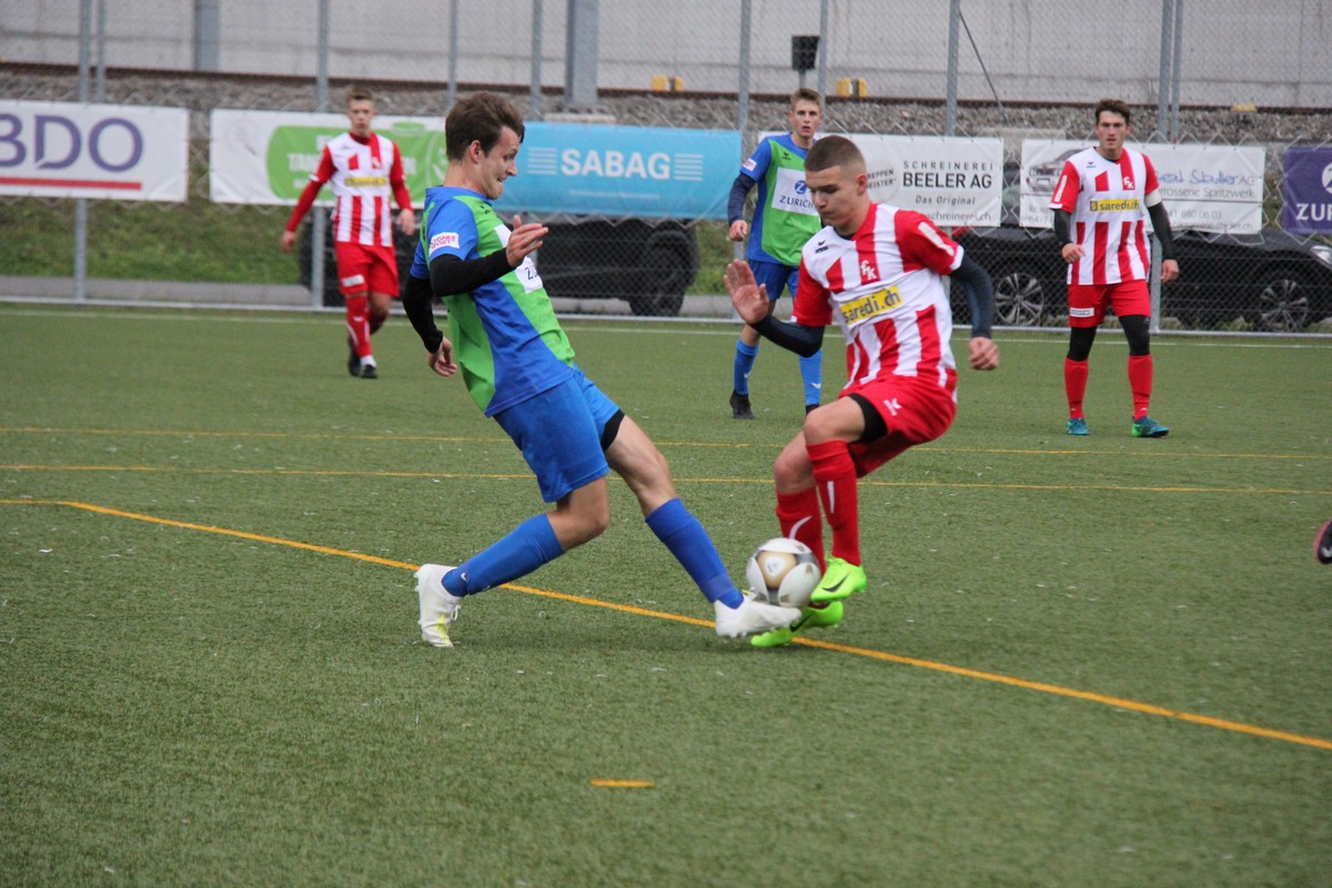Tendenziell war es der leichte Favorit Erstfeld, der gefährlicher in die Partie kam. Zwar spielte Küssnacht munter mit, doch besonders über links brachten die Urner Druck aufs Tor. Nach knapp zehn Minuten war es ein Freistoss von Gian-Luca Tresch, der per Kopfball an die Latte abgefälscht wurde. Kurz darauf dann das frühe Gegentor für Küssnacht: Samuel Baumann liess zwei Verfolger auf der linken Seite stehen und brachte den Ball flach in die Mitte. Dort stand Silvan Baumann zu unbedrängt schussbereit und verwertete zum 1:0. Wie so oft in dieser Saison rannte der FCK also wieder einem Rückstand hinterher. Nur Minuten später gab es dann erstmals Aufregung auf der Gegenseite. Oliver Rössler reklamierte nach einem Freistoss zurecht aber erfolglos Penalty als ihn ein Erstfeld-Verteidiger zurückhielt.