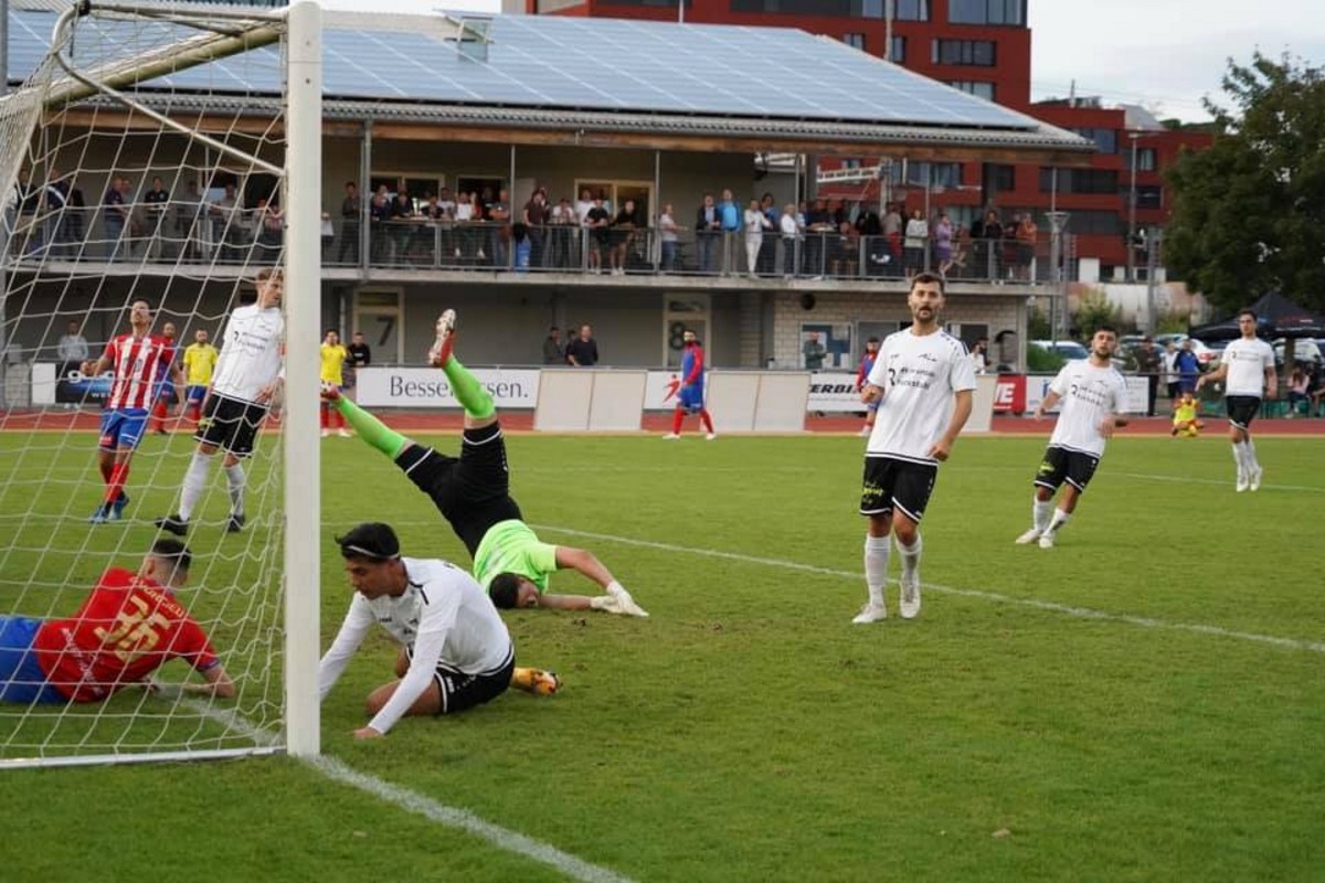 Der FCR war zwar feldüberlegen, viele klare Torchancen konnte man sich aber wegen zu langsamen Umschaltens nicht erspielen. Als sich alle schon mit einem torlosen Pausenstand abgefunden hatten, kam der FCR in der Nachspielzeit (45.+1.) doch noch zur Führung. Nach einem langen Ball in den Gästestrafraum mit viel Verkehr vor Hüter Haberstroh, stimmte die Abstimmung zwischen diesem und seiner Abwehr für einen Moment nicht. Der mitaufgerückte, kopfballstarke FCR Verteidiger Mentor Latifi erkannte die Situation blitzschnell und überlobte den zu spät herauseilenden Torhüter mit seinem Kopfball in leere Tor zur 1:0. Führung.