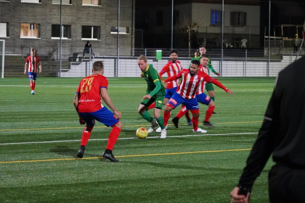 Rotkreuz blieb jetzt dran und nach einem Foul an Davide Palatucci entschied der gute Unparteiische in der 37. Minute auf Elfmeter. Der auffällige Guto Cappellini verwandelte den Strafstoss mit einem wuchtigen Schuss unhaltbar und brachte den FCR so in Führung. Der gutorganisierte, kämpferisch starke FC Mutschellen kam seinerseits in der 41. Minute noch zu einer guten Ausgleichschance. Der starke FCR Hüter Joao Ngongo liess sich aber nicht erwischen in der weiten Ecke und so ging es mit der knappen Rotkreuzer Führung in die Pause.