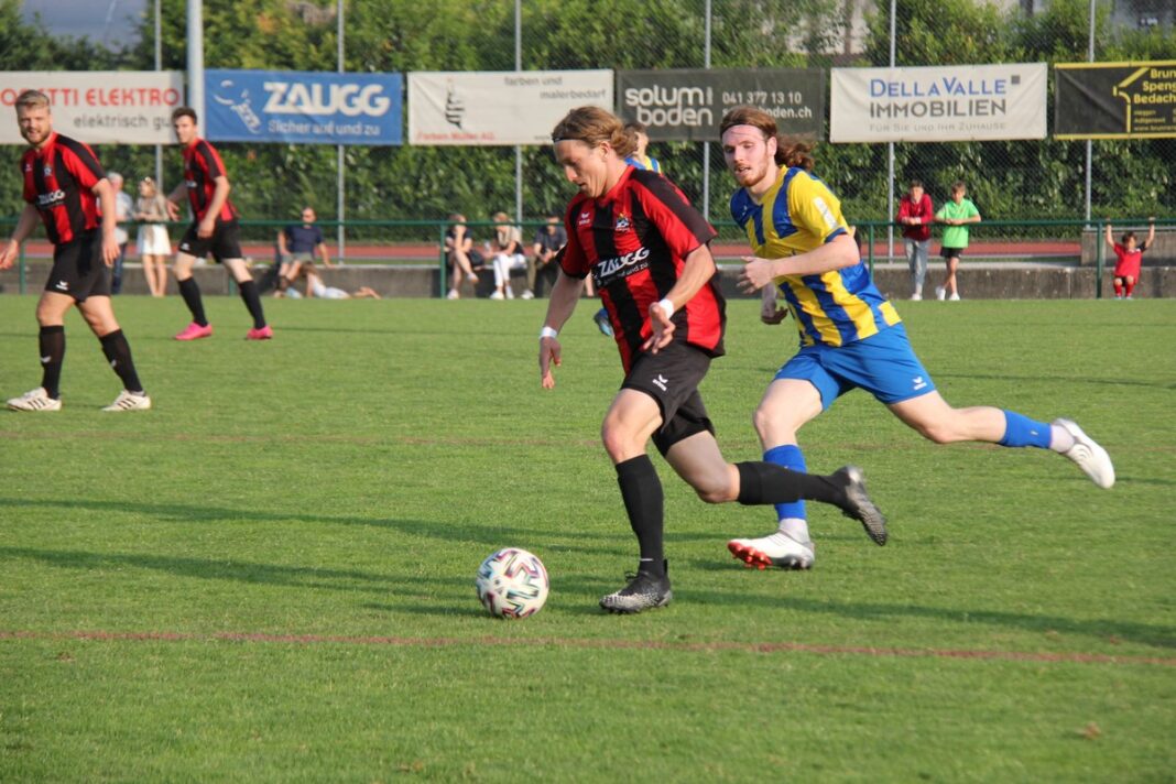 Nach einer halben Stunde kam Meggen durch Luca Lo Presti zu einer weiteren Chance. Der für dieses Spiel in die Innenverteidigung beorderte Roberto Tarzia klärte per Grätsche. Kurz vor der Pause hätte Küssnacht das Skore in der Person von Mario Stadler eröffnen können. Zuerst setzte er sich auf der linken Seite geschickt durch und stand nach einer Finte vor Goalie Grüter. Im letzten Moment grätschte Verteidiger Zehnder dazwischen. Nur eine Minute später landete ein Eckball bei Mario Stadler. Die sehenswerte Direktabnahme vermochte der Meggen-Goalie zu neutralisieren. So ging eine unterhaltsame erste Halbzeit 0:0 zu Ende. Mit dem Wiederanpfiff brachte Meggen einen neuen Spieler: Egzon Knushaj. Und dieser sollte nur drei Minuten später zur Führung treffen. Der per Steilpass lancierte Gianluca Muggli wurde durch Lino Stadler im Strafraum regelwidrig am Abschluss gehindert. Knushaj verwandelte den Penalty zum 1:0.