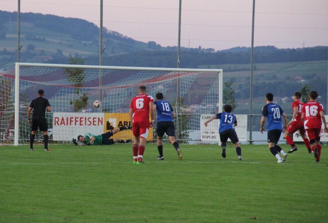 In den darauffolgenden Minuten glich sich die Partie aus, ehe in der Schlussphase der ersten Halbzeit, Wolhusen wiederum einen Gang höher schaltete. Erst setzte Alain Brunner einen Lobball zu hoch an (33.) bevor er dies in der 38. Minute besser machte und den Ball zum 1:2 einnetzte. Die Führung der Gäste geriet nochmals auf den Prüfstand, als der gut leitende Schiedsrichter Sandro Schaub, einen hart geahndeten Elfmeter Diktierte. Nico Hodel scheiterte in der 43. Minute an der glänzenden Parade von David Wicki, welcher die richtige Ecke ahnte und damit die Gäste mit einer knappen Führung in die Pause begleitete.