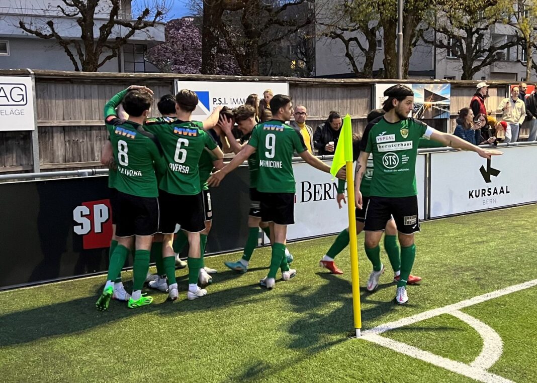 Wer jetzt einen Sturmlauf von Breitenrain erwartete wurde enttäuscht. Wir blieben aufsässig, Carlo Manicone zum Beispiel. Einen weiten Ball gab er nicht verloren, der missglückte Befreiungsschlag landete bei Leonardo Gubinelli und der zog eben Mal aus mindestens 20 Metern ab, trocken ins Eck. 3:1 für uns. Jubeltraube mit den mitgereisten SCK-Supportern. So soll das sein und wir freuen uns aufs Voting fürs Tor der Runde.
