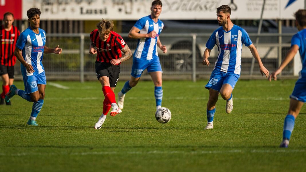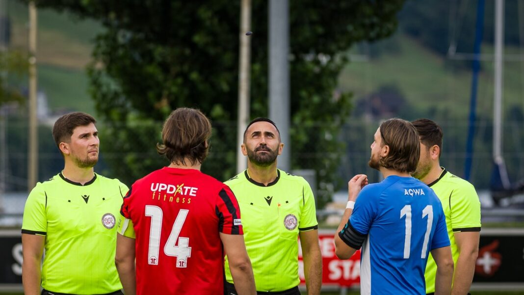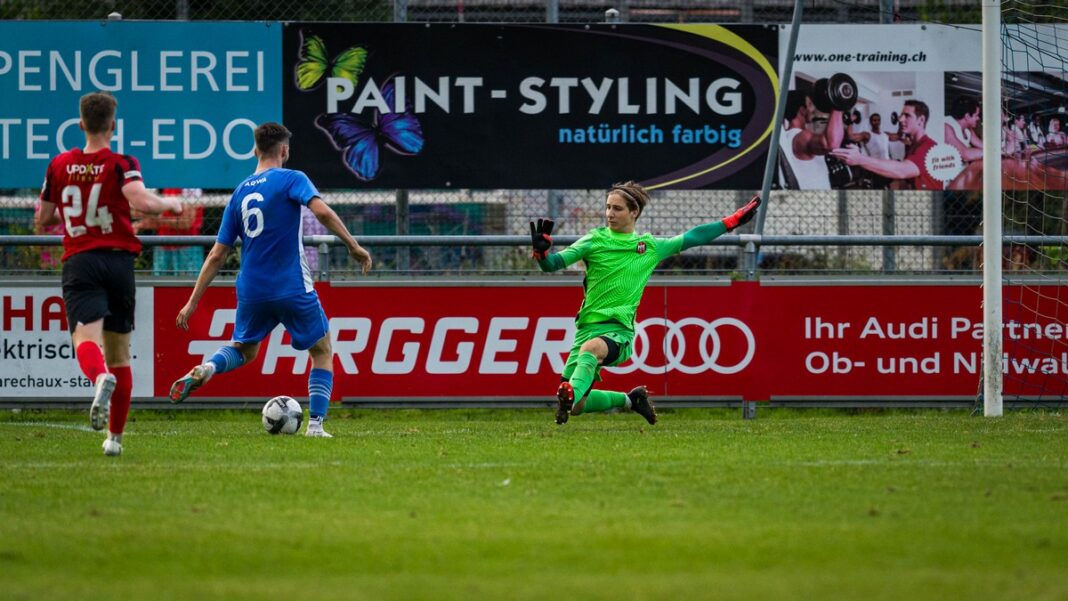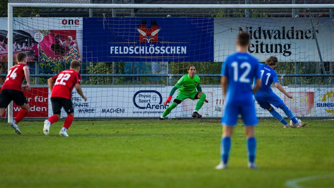 Dann aber folgte der grosse Auftritt von Josua Vonlaufen, der den Ball elegant mit seinem schwächeren linken Fuss in die Maschen zirkelte und damit eine turbulente Schlussphase einläutete. Kurz darauf kam nach einer tollen Kombination der ausgepowerte Philippe Fischer im Strafraum irgendwie zu Fall, was dem aufmerksamen Schiedsrichter Astrid Mehmeti zum Penaltypfiff genügte. Severin Aregger verwandelte souverän und wäre vielleicht noch zum Matchwinner geworden, hätte der Schiedsrichter ein Zurückhalten an Dastin Szymanski tief in der Nachspielzeit mit einem weiteren Penalty geahndet. Das wäre dann aber wohl etwas zu viel des Guten gewesen, entsprach das Unentschieden doch eher dem Gezeigten auf dem Buochser Seefeld und fühlte sich für den FC Kickers aufgrund der späten Tore sehr gut an.