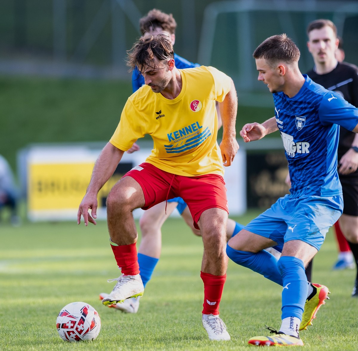 Wie zu erwarten war, begann die Partie zwischen der jungen Buochser Truppe und den Goldauern temporeich, ja fast schon wild. Beide Teams spielten mit offenem Visier und in den ersten 25 Minuten reihten sich Angriff um Angriff auf beiden Seiten. Buochs kreierte dabei oft konkretere Torgefahr als die Goldauer. Doch mit Grätschen, Blocks im letzten Moment und auch dank mehreren starken Paraden von Torhüter Ukaj konnte Goldaus Hintermannschaft den Einschlag ins Netz verhindern. Auf der Gegenseite sorgten Huber, Di Clemente und die beiden Zeka-Brüder immer wieder für Gefahr, schafften es aber nicht die Goldauer mit ihren Abschlüssen in Führung zu bringen. Etwas Pech hatten die Gäste auch als ein Penaltypfiff nach einem klaren Foul an Huber ausblieb.
