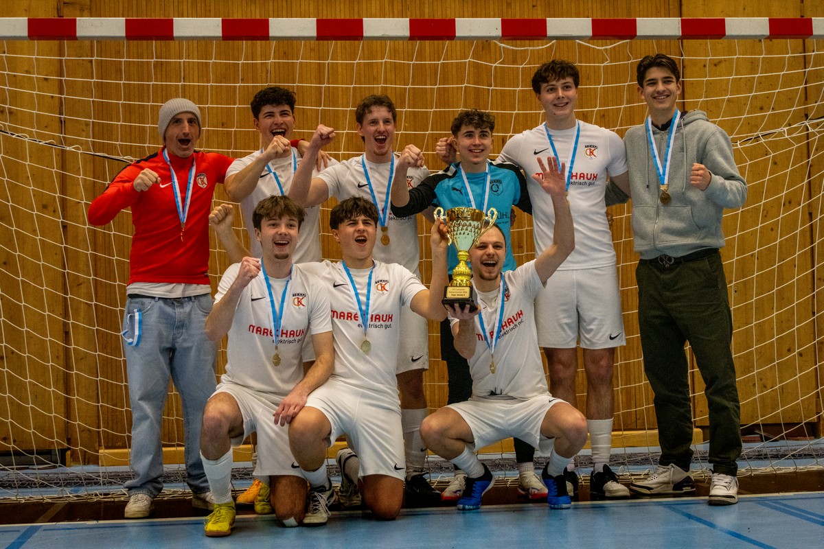 Das Team OG Kickers feiert den IFV-Hallenmeistertitel 2026 (Bild: @capturedby_luka).