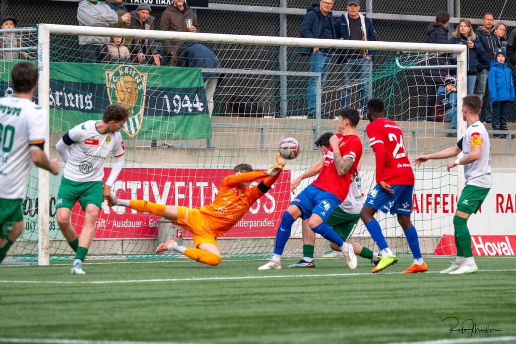 Cham nutzte die Unsicherheiten der Krienser früh und konsequent. Bereits in der 24. Minute führte ein hoher Corner der Zuger zum 0:1, nachdem der Ball unglücklich im Tor landete. Nur wenige Minuten später folgte das 0:2: Ein Ballverlust auf Höhe der Mittellinie öffnete Cham die Tür zu einem mustergültigen Konter, den die Gäste souverän abschlossen.
