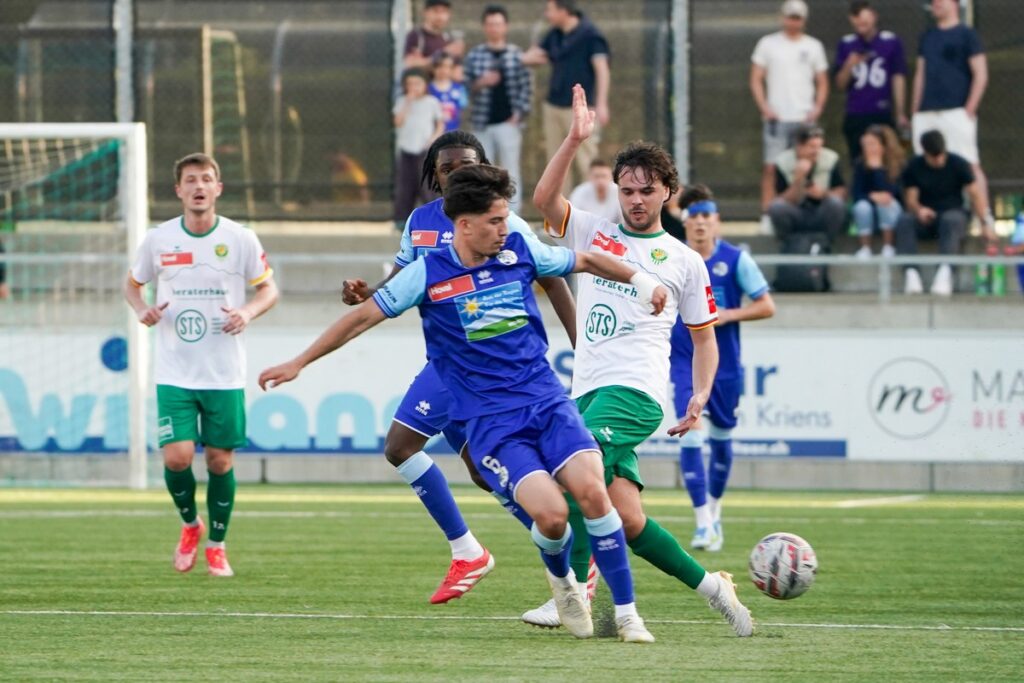 Kriens übernahm früh die Kontrolle und erspielte sich mehrere klare Möglichkeiten. Besonders Nando Toggenburger, Rrezart Hoxha und Enea Heiniger kamen bereits in der Anfangsphase zu guten Abschlüssen. Auf der Gegenseite wurde es vor allem dann brenzlig, wenn die Gäste über ihre linke Seite Tempo aufnahmen. In einer Szene kurz vor der halben Stunde bewahrte Torhüter Patrick Zajac sein Team mit einer starken Parade vor dem Rückstand.