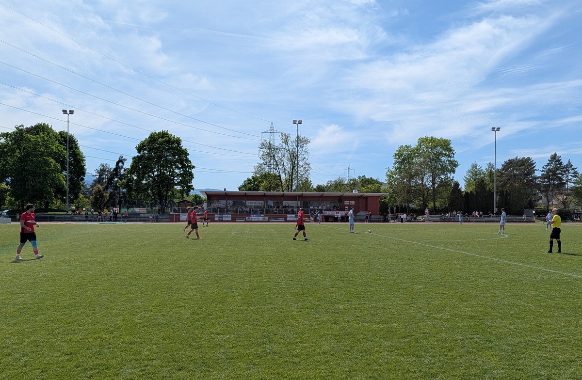 Um 16.51 Uhr endeten am Sonntagnachmittag für Rothenburg gleich zwei eindrucksvolle Serien. Einerseits kassierte die junge Mannschaft zum ersten Mal seit genau einem Jahr eine Niederlage auf heimischen Boden. Andererseits musste man sich erstmals wieder seit September 2025 geschlagen geben, doch alles der Reihe nach. Vor dem Spitzenspiel, Erster gegen Zweiten, traf sich die gesamte Mannschaft zum Mittagessen im Clubhaus. Die Vorfreude auf das bevorstehende Kräftemessen mit Zug94 war deutlich spürbar. Unabhängig des Spielausgangs gegen den Leader durfte Rothenburg mit der Gewissheit antreten den zweiten Platz zu behalten, weil zuvor die beiden Verfolger Obergeissenstein und Littau im direkten Duell lediglich Unentschieden spielten. Zuversichtlich, aber auch im Wissen welche spielerische Wucht auf die Chärnsmatt Kicker zukommt, startete s’Zwöi um 15 Uhr bei sommerlichen äusseren Bedingungen in den Spitzenkampf vor rund 100 Zuschauenden. Es dauerte keine zwei Minuten als Rothenburg ein erstes Mal im Strafraum auftauchte. Gisler versuchte mit seinem Lupfer den herauseilenden Zuger Torhüter zu überraschen. Leider landete der Ball einen Meter neben dem Tor.